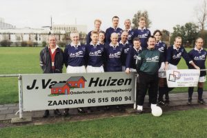 Zaandijk 7 in 1999. Jaap van Huizen staat te midden van zijn elftalvrienden.